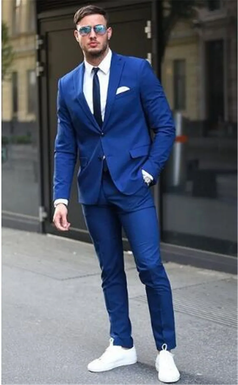 Blue Formal Office Business Men Suit Custom Made Two Piece Simple Bridegroom Wedding Tuxedos Slim Wear Dress Jacket Pant Tailor Made Suits Aliexpress
